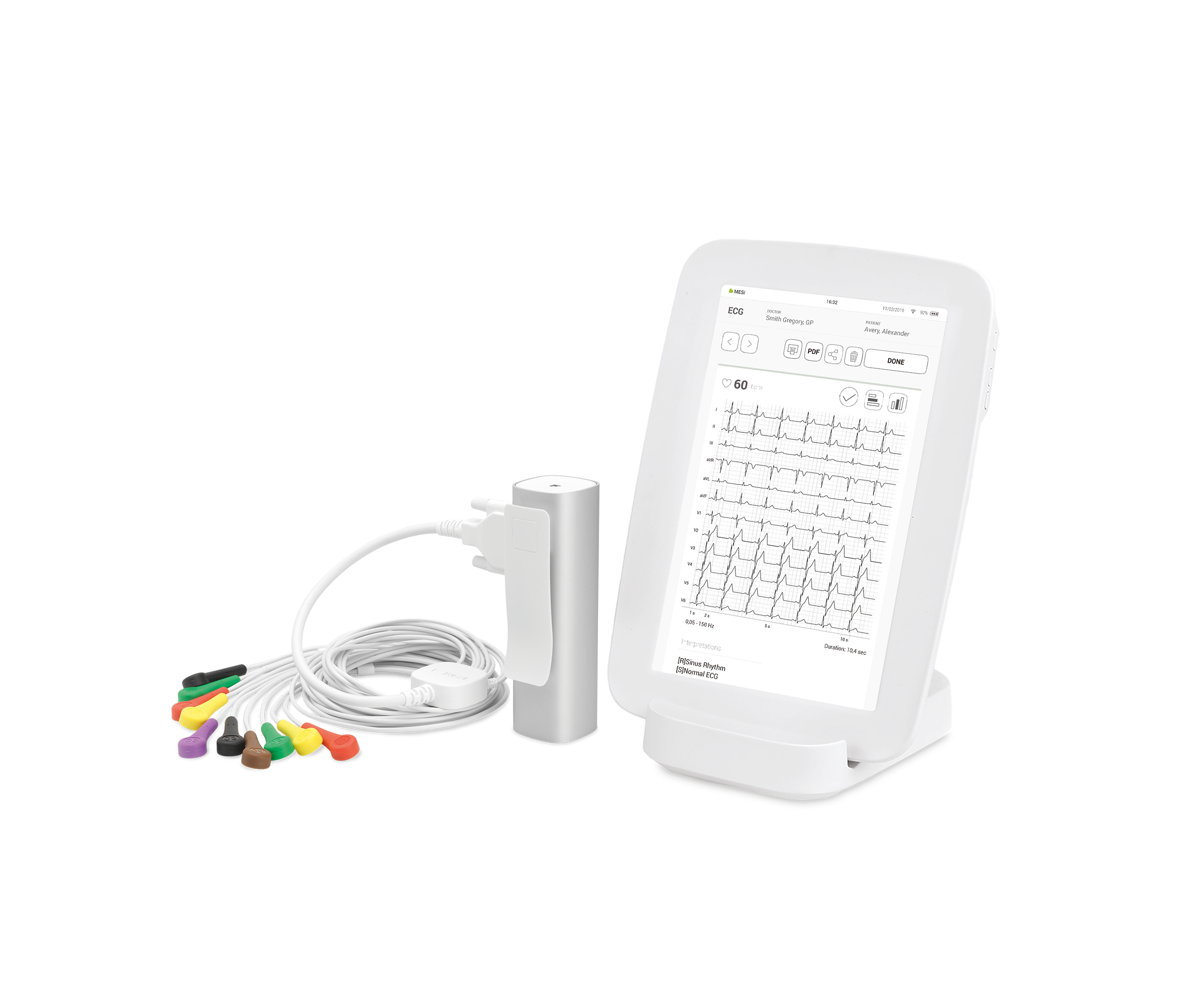 Plne digitálne 12 kanálové tabletové EKG pre moderné a rýchle natáčanie EKG v ordinácii alebo v teréne u pacientov. EKG ponúka automatické rozmeranie EKG krivky a slovnú interpretáciu. Možnosť zadania tlače priamo z tabletu na tlačiarňach, ktoré sú v ambulancii.